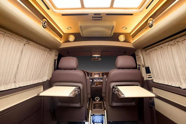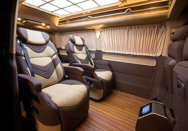 這款高頂T6凱路威商務(wù)車,在前后艙之間沒有采用隔斷,而是保留了視線的通暢。15.6寸液晶電視吸頂安裝,BOSE音響低音效果出眾。桌板升起,可以輕松處理公務(wù);儲(chǔ)物空間眾多,各種物品整齊收納;多處充電插座,電子設(shè)備方便使用。