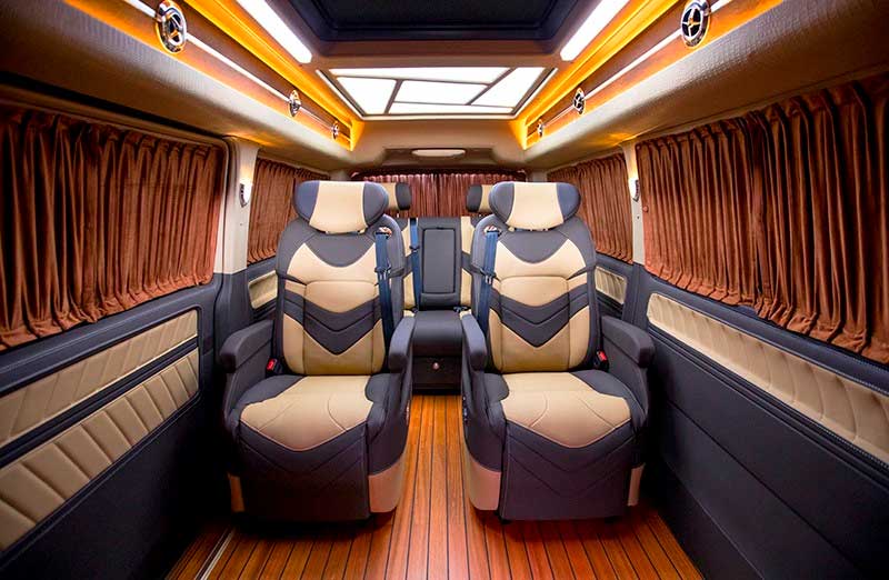 走進(jìn)駕駛倉(cāng),可見(jiàn)該車(chē)內(nèi)飾精致細(xì)膩、質(zhì)感非凡:內(nèi)頂、立柱、墻盒、門(mén)板等全部采用nappa級(jí)高級(jí)皮料包覆,儀表臺(tái)采用高級(jí)皮料加高光木紋裝飾,整車(chē)內(nèi)部采用手工縫紉功能,其中駕駛室內(nèi)為豪華主副駕駛座椅,兩座椅中設(shè)計(jì)有迷你車(chē)載電子冰箱,冰箱帶儲(chǔ)物及杯托功能,在行車(chē)途中來(lái)一杯冷藏飲料,十分愜意。