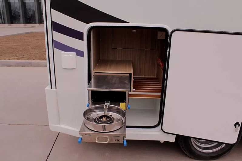 一、掌握房車外的基礎(chǔ)設(shè)施建設(shè) 轎車的外部設(shè)施通常分為普通設(shè)施,如加油口、加水口、充電口、儲(chǔ)物箱(內(nèi)部可安裝發(fā)電機(jī)或油箱)、遮陽傘、戶外燈、登車臺(tái)階等。有些車輛有外部擴(kuò)展艙,還有外部廚房、外部淋浴、外部電視、后梯、自行車架等設(shè)施。上車前,你應(yīng)該掌握車輛外部設(shè)施的使用。